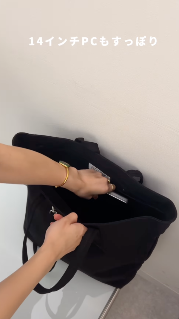 14インチPCや着替えも収納できました!MM6のトートバッグは荷物が多い人にとって強い味方になること間違いないでしょう♪BUYMAでは4万円台から購入できるので、ぜひチェックしてみてください!