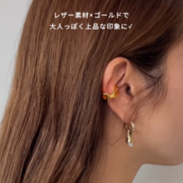 メタルの「H」はやっぱり、オランプのイヤーカフの顔。そしてサイドはレザーで仕立てられており、精緻な作りに惚れ惚れします。ゴールド素材×レザーの組み合わせがとってもエレガントです!