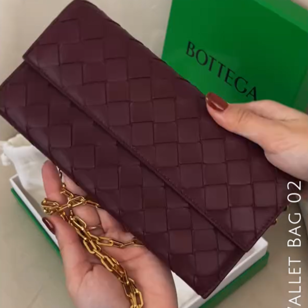 BOTTEGA VENETA(ボッテガヴェネタ)のウォレットバッグは、上質レザーのイントレチャートで長く愛用できます。こっくりとしたボルドーカラーが大人レディ♡