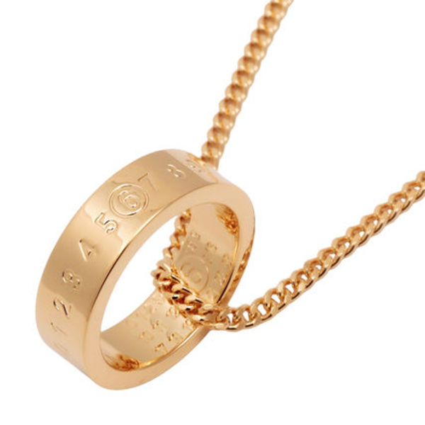 “MARGIELA6”が刻印されたリングがポイントになったMM6 Maison Margiela(エムエムシックス)のペンダント♡チェーン部分にはナンバリングロゴのプレートがついていて、ブランドらしさが漂います。彼とペアで着けても存在感があっておしゃれ♪