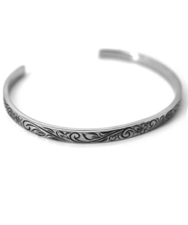 チェーンブレスレットも素敵ですが、実はナローバングルもオススメ。細幅ながらデザイン性も詰まっており、ドメスティックブランドならではの安心感もあります。