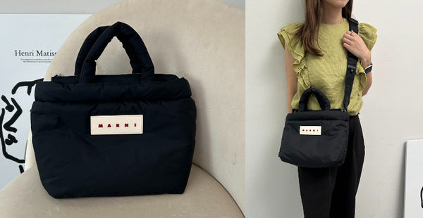 ふっくらとした素材感が愛らしいMARNI(マルニ)のナイロンバッグは、とっても軽くて荷物が沢山入るのでお気に入り。取り外し可能なストラップが付属しているのでショルダーバッグとして持つこともできて、大人気なハイブランドだけれど価格がお手頃なのも嬉しいポイントです。(STYLE HAUS編集部員:Rie)