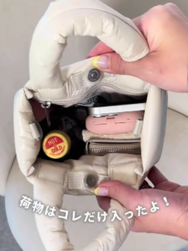 滑らかなパフィー生地のため、これだけ詰め込んでもパンパンになることはなく、少し余裕もあります!