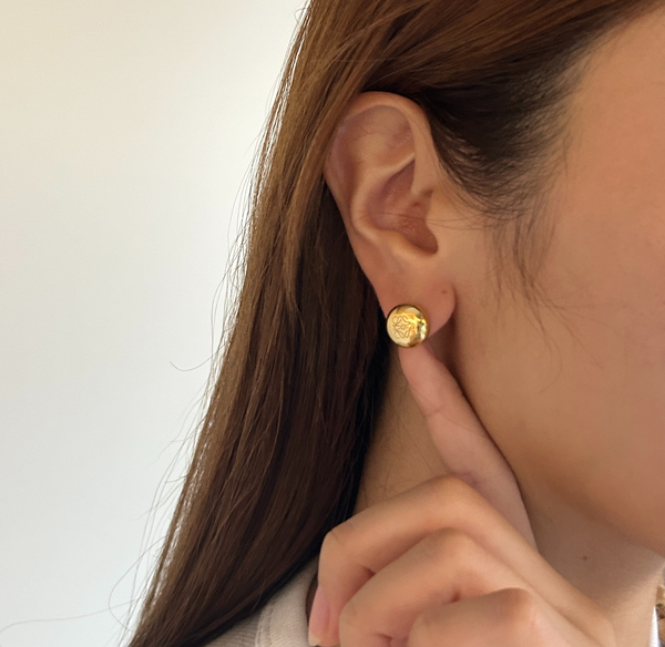 リングと同じくナンバリングされたピアスは、つるっとした光沢感が素敵。リングとピアスでセットにつけるのがおすすめです。
