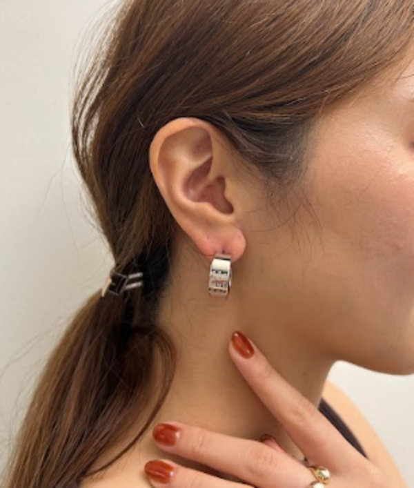 よく見るとねじったようなデザインになった『ツイストフープピアス』は、ボッテガらしいモードな雰囲気がGOOD。秋冬の時期に合わせやすそうです。