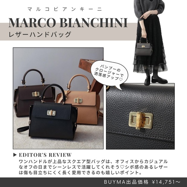 イタリアブランドのアイデンティティを体現しながら、世界中の女性に熱い支持を受けるバッグブランド・MARCO BIANCHINI(マルコビアンキーニ)。トレンドをいち早く取り入れたデザインと、ベーシックな中にも一工夫あるデザインが特徴です。素材の良さが生きたバッグが揃うと評判を呼んでいます。