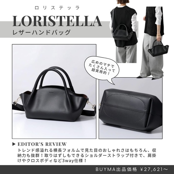 イタリア生まれのブランド・LORISTELLA(ロリステッラ)。大人レディにぴったりなシンプルなデザインが特徴で、スタイリッシュなバッグが勢揃いすると評判です。またコストパフォーマンスも非常に高く、高くてもおよそ3万円まででおしゃれなバッグが揃います。