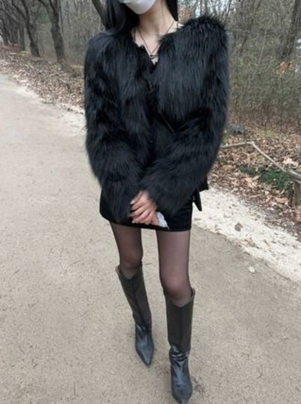 ノーカラーのファーアウターはきれいめなスタイリングが好みの方におすすめ。絶妙な丈感がスタイリングのバランスを取ってくれるのでいつものコーディネートに取り入れやすい♡