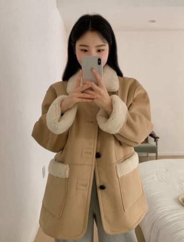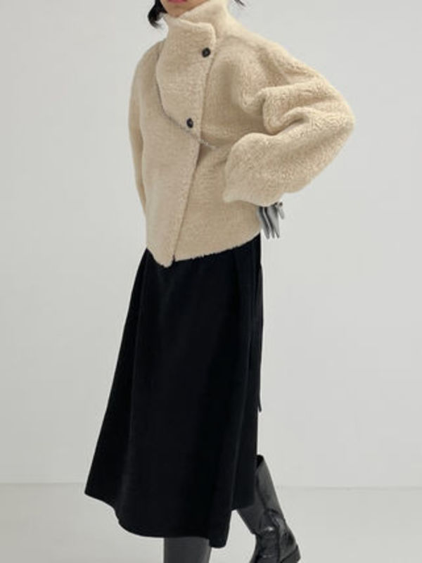 一枚で様になるムートンショートコート。ボタンがフロントではなくサイドにクロスでかけるデザインは他になく、ボタンを閉めても、開けて着ても動きが出て可愛いアウター♡シンプルだからこそ飽きが来ないためタイムレスに着ることが出来ます。