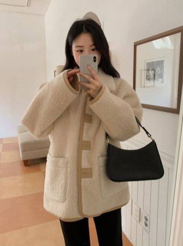 立体感のある素材感が一気にオシャレ見えするアウター。首元のベルトを締めると襟が立ちまた違う雰囲気になるのも魅力的。ボリュームのあるモコモコ素材でしっかり防寒もしながらオシャレを楽しむことができる一枚です♡