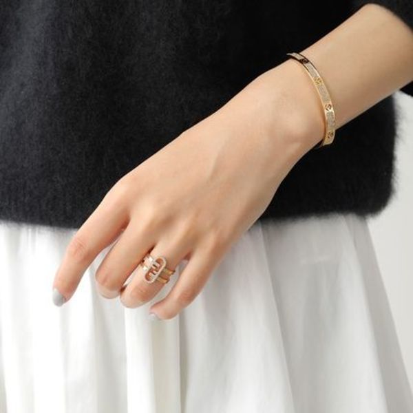オーロックのモノグラムがあしらわれた細身のリング。丸みのあるデザインで柔らかい雰囲気でレイヤードが楽しめるひとつになっています。存在感もありつつ、重ね付けをした時もやりすぎないので毎日つけたいデザインです♡