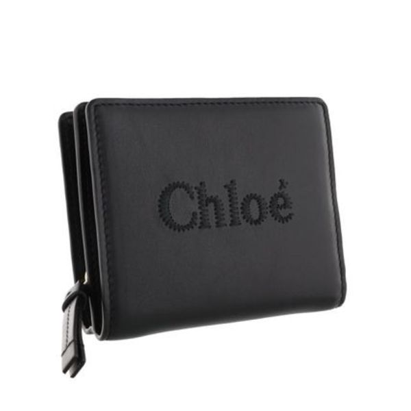 Chloe(クロエ)の刺繍をあしらった大人ガーリーな『センス』の二つ折り財布。オールブラックなら、甘すぎず程よく引き締まって見えるので大人女子も使いやすいです。