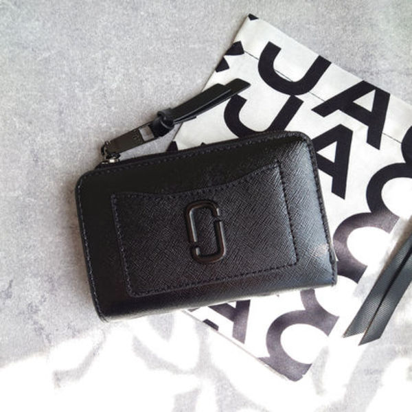 MARC JACOBS(マークジェイコブス)の折りたたみ財布は、コインケースが独立しているので取り出しやすくて使い買って抜群。型押しレザーの上質な素材感がオールブラックでより引き立っています。