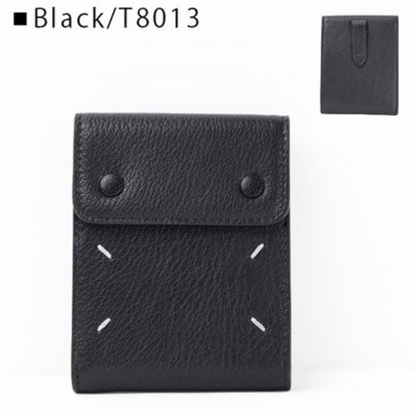 ▼フラップタイプの二つ折り財布はかなり珍しいモデル。表の金具もブラックに統一されていることで、マルジェラの証となるホワイトステッチも映えます。
