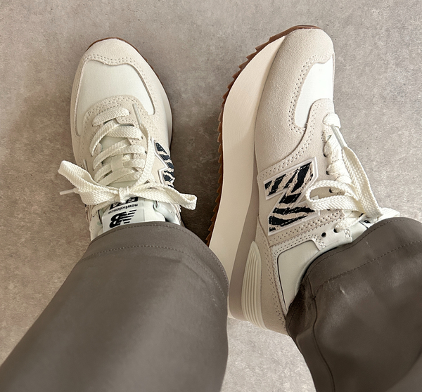 New Balance(ニューバランス)が時代を超えて改良を続けているロングセラーモデルの「574」は、部分的に組み合わせられたスエード素材が洒落感たっぷり。日常使いもしやすいアイコニックなフォルムのほか、脚長効果を叶えてくれる厚底ソールデザインに熱視線が注がれています。