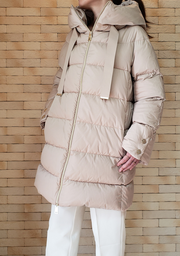 エディターが推すもう一つのダウンブランドが、イタリア発のHERNO(ヘルノ)。ヘルノダウンの特徴はなんといってもそのボリューム感。贅沢な素材使いにもかかわらずその軽さと体を包み込むような着心地の良さが魅力です。シンプルなAラインのロングダウン「RASO」は太めのグログランテープにロゴマークを刻印した手首のボタンなど、ディテールまでセンスが光ります。