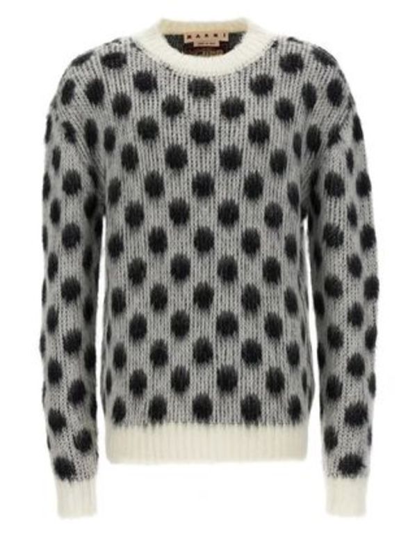 ドット柄のモヘアニットは柔らかく存在感たっぷりのルックスが特徴的。さすがハイブランド、「39% アセテート, 33% ポリアミド, 28% モヘヤ」と素材に関しても本物を使いこだわっています。ハイブランドにもモヘアニットの展開は多いので、ぜひ注目してみてください。