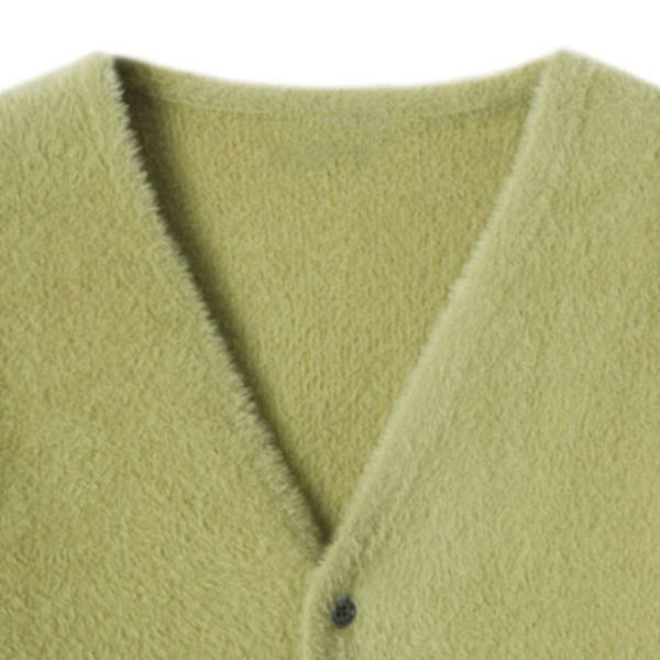 モヘアニットのカーディガンを一枚持っておくと本当に便利です。軽くて薄い造りとなっているのでレイヤードアイテムとして最適ですし、冬場の室内であればモヘアニットカーディガンだけで十分でしょう。特にオススメしたいのは「冬場だからこそ明るい色物」となります。ぜひコーデに取り入れてみましょう!