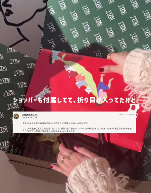 ショッパーは折り曲げた状態で同梱されていましたが、事前にその旨をお知らせしてくれていたので問題なし。