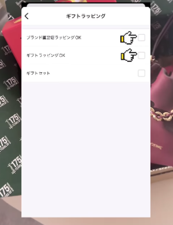 検索条件で「ギフトラッピング」を選択するだけで、ラッピング対応可能なアイテムを絞り込むことができます。念のため出品者さんに直接お問い合わせするのも◎