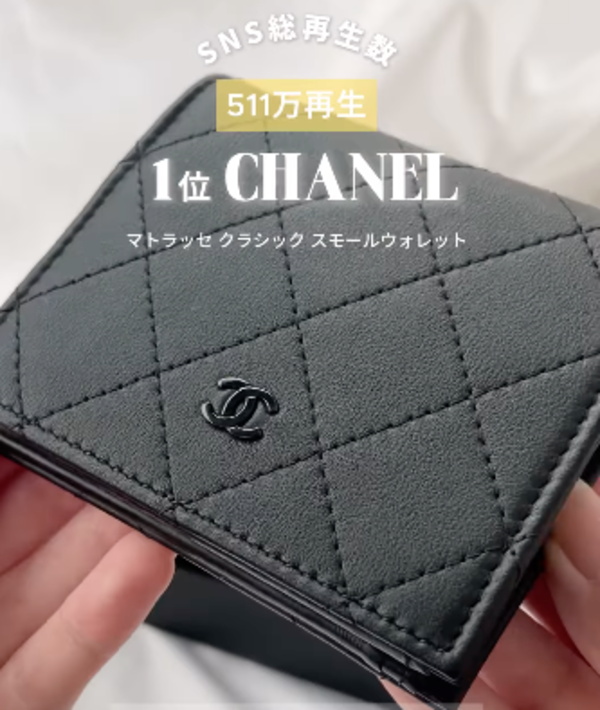 ∟SNS総再生数は脅威の511万再生と、今年最もハズったのがCHANEL(シャネル)のマトラッセクラシックスモールウォレット!品格漂うキャビアスキン×マトラッセなデザインに、全体がオールブラックで統一されているので“CCロゴ”の主張も控えめな印象を放ちます。過去1の大人っぽいデザインに多くの人が魅了されたのです♡