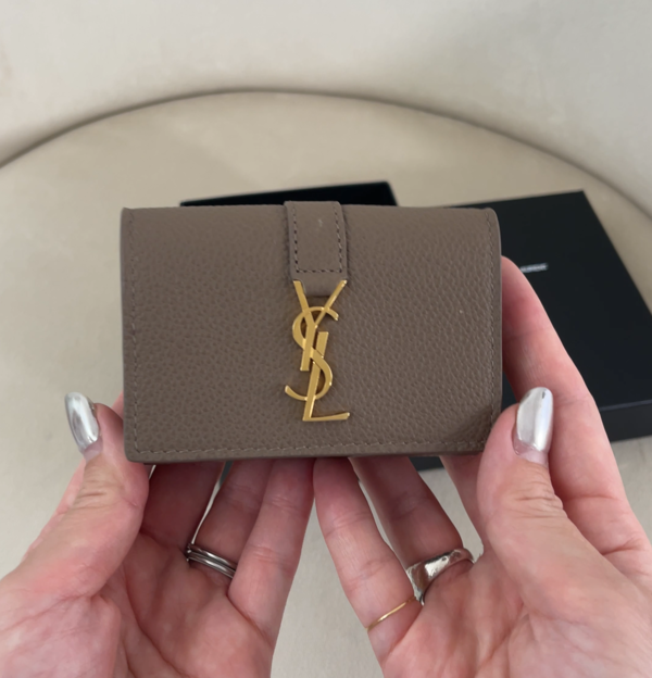 ∟ミニマルながら高機能なお財布だと話題を呼んでいるのが、SAINT LAURENT(サンローラン)のYSLラインオリガミタイニーウォレット!折り紙からインスピレーションを受けた人気シリーズの三つ折り財布で、カサンドラロゴがスタイリッシュなポイントになっています。小さめのバッグにもすっぽり入るサイズ感で、ちょっとした外出にも重宝しそう!