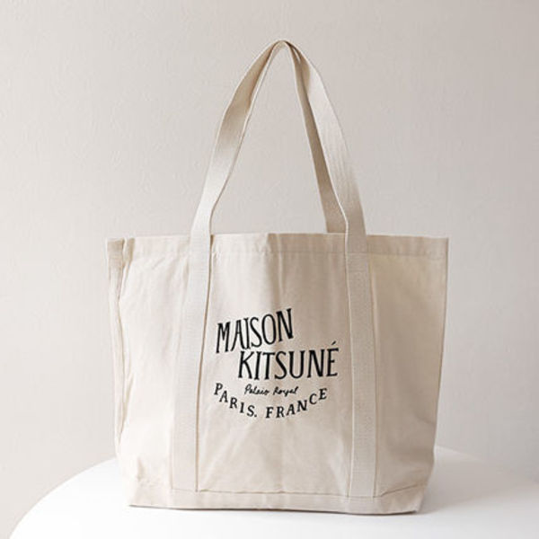 メゾンキツネのジッパートートバッグは、普段使いしやすい2wayタイプ。丈夫なコットンキャンバス地にキツネのロゴや刺繍が施されています。収納に便利な外ポケット付きで、旅行やお出かけにも最適です。
