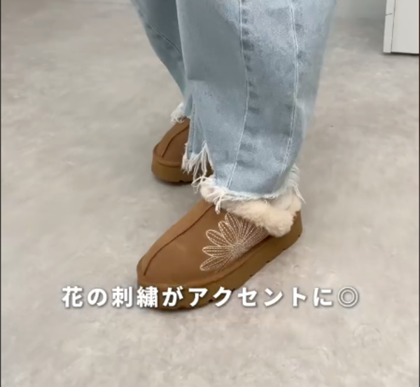 ボアが荒めのタイプですが、見た目の可愛さはトップレベル!なのでふわふわ感が苦手な人には、特におすすめです。また着脱がスムーズな作りで、安定感もあって歩きやすい♡人と差をつけるUGGをお探しなら、これで決まりかも。