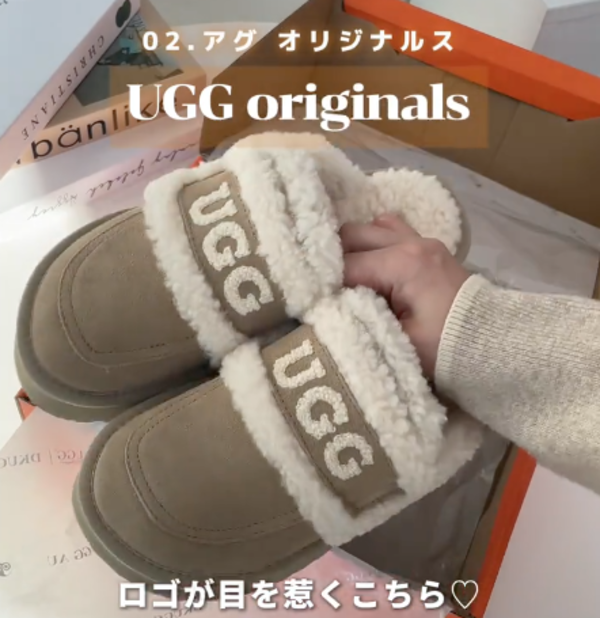 ∟目を惹くUGGロゴがアクセントになっていてる「もこもこシューズ」は、UGGオーストラリアが展開するUGG originals(アグオリジナルス)のもの!人と差をつけることができるもこもこシューズだと話題を呼んでいます。