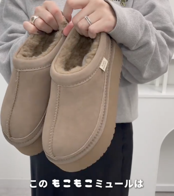 その見た目の暖かさから、今売れに売れているシューズの一つが「もこもこシューズ」!