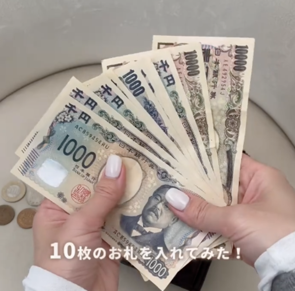 お札入れは1つ。では実際に、10枚のお札を入れてみると・・・
