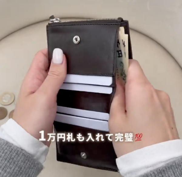10枚のお札を入れても楽に収納できます。また1万円札もスッキリと収納可能。裏地には滑りが良い生地が採用されており、お札の出し入れもしやすくGOODです。