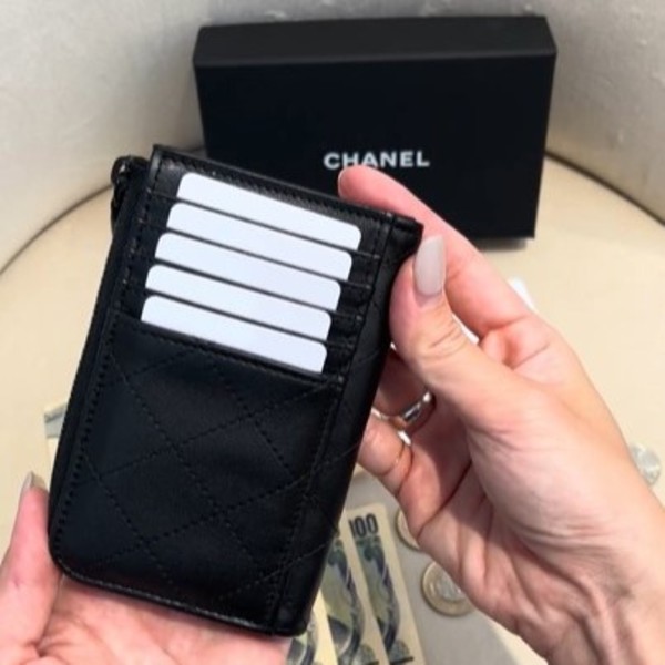 シャネルらしいマトラッセ×レザーがラグジュアリーな印象♡シンプルで無駄のない構造だから、お財布をコンパクトに持ち歩きたい方におすすめです。
