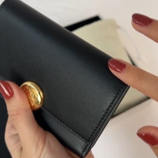 LOEWE(ロエベ)の大人気シリーズ『ぺブル』から、使いやすい三つ折り財布が登場!アナグラムモチーフを刻印した金ボタンがアクセントになっています。