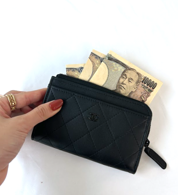 CHANEL(シャネル)のオールブラック財布は、CCロゴもさりげなく上品に持てるアイテム♡綺麗なお姉さんが持っていそうな高級感とエレガントさを感じさせてくれます。