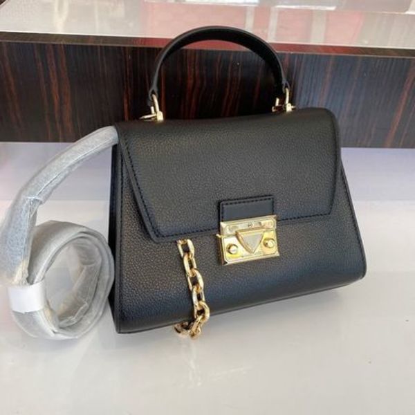 △MARC JACOBS(マークジェイコブス)は、カジュアルなイメージが強いですが、意外とワンハンドルのクラシックバッグも展開。チェーンがプラスされたダブルJマークがエレガント♡ツヤのあるレザー素材がリッチです。