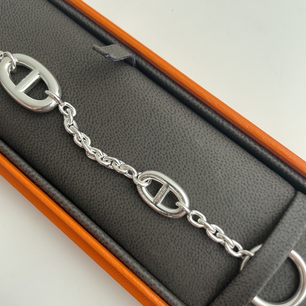 エルメス ファランドールのブレスレットは、上品な印象を与える細めのチェーンが特徴です。無駄のないシンプルなデザインで、カジュアルにもフォーマルにも馴染みます。シェーヌ・ダンクルに比べて軽量なため、日常使いしやすい点もポイントです。