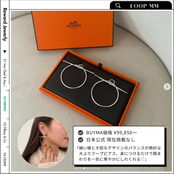 「LOOP MM」は、定番なフープピアスに華奢なラインを組み合わせたエルメスならではのエッセンスを感じられるピアスです。