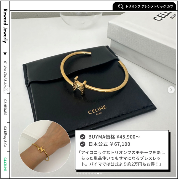 セリーヌのアイコンである「トリオンフ」モチーフが取り入れられたブレスレット。