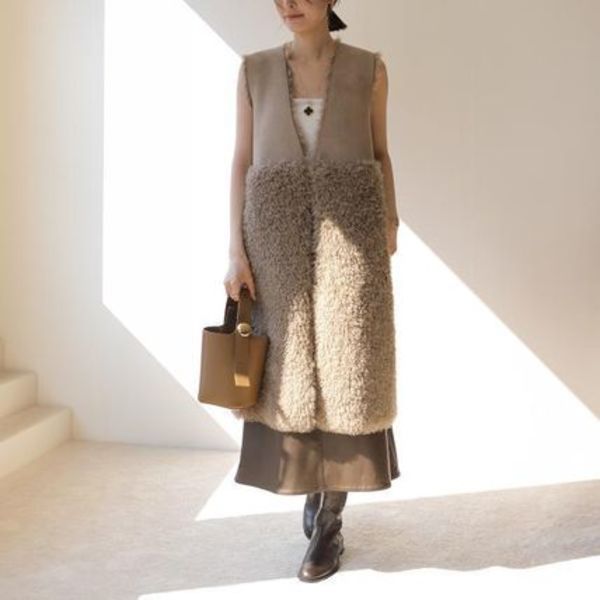 『モニーレ』のロングベストは、リバーシブルで異なる表情を楽しめるジレ。