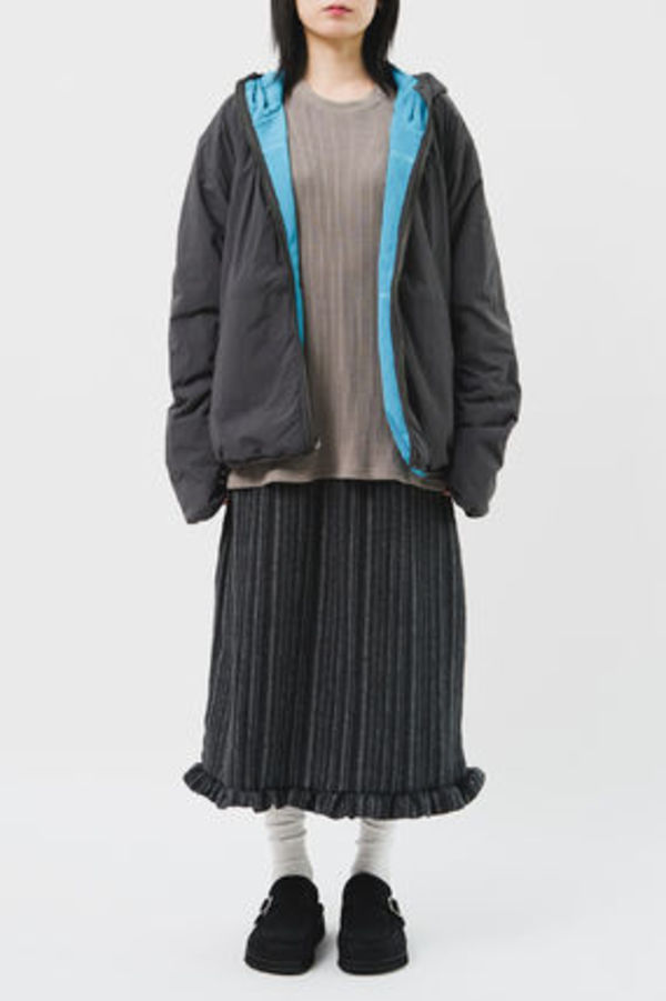 もう片面はシンプルなフリースデザインで、スタイリッシュなカジュアル感を楽しめます。さり気なく下半身の体型カバーを叶えてくれるのも嬉しいポイント。