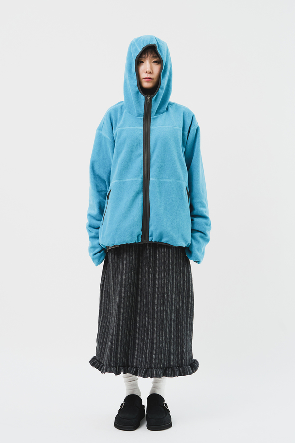 『ハイファイファンク』のフリースジャケットは、片面がシンプルな無地で、どんなコーディネートにも合わせやすいデザイン。オーバーサイズのシルエットが、トレンド感を盛り立てます。