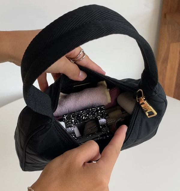 サイドまであるジップに、広めのマチで収納力抜群。キルティングを使用しているので、開けやすく扱いやすいのもGOODです!