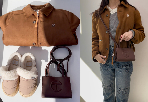 カジュアルからきれいめなフェミニンスタイルまで多様な着こなしに合わせやすいのも、Telfar(テルファー)が誇るショッピングバッグならではの魅力。何気ないブラウンのワントーンコーデも完成度を高めることができます。