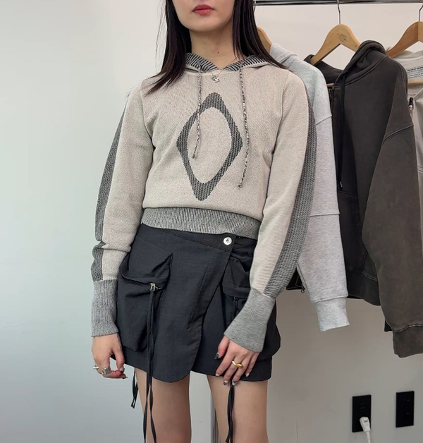 RHOMBUS KNIT HOODIE / ¥13,518-