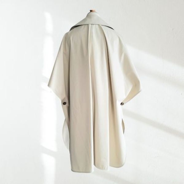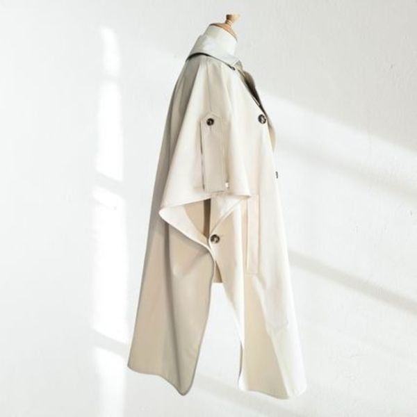 「FINEZZA」は、撥水加工が施されたピュアコットンギャバジン生地を使用したトレンチスタイルのケープで、トレンチコートとケープの良いとこどりの洗練されたデザインが魅力です。「ベーシックなトレンチは少しマンネリ気味・・・」という人には、こんなこだわったひと味違う進化形タイプを今年は、リコメンドするのが正解かも!
