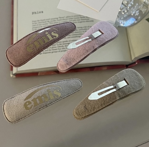 エミスのブランドロゴを象ったヘアクリップセットは、ぜひ2個付けで楽しみたい!柔らかなニュートラルカラーは、付けた人の表情も明るく見せてくれるはず。