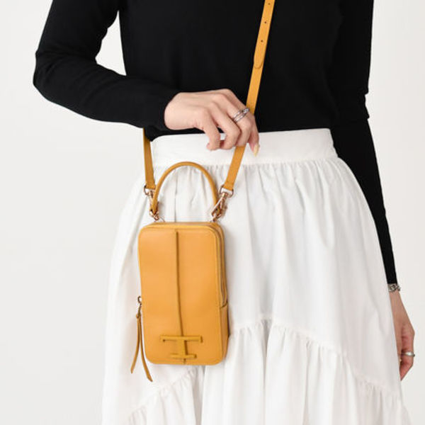 トッズの「Tタイムレススマートフォンバッグ」は、上質なカーフレザーを使用し、アイコニックな「T」のモチーフをあしらったバックルが特徴です。シンプルながらも存在感のあるデザインで、さまざまなコーデにマッチします。