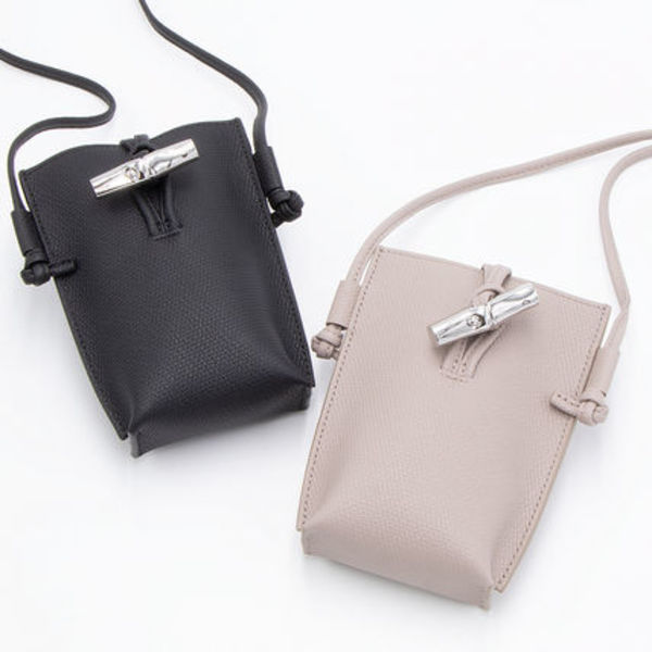ロンシャンには、コンパクトで財布やスマホを入れるのに最適なスマホショルダーが多数展開されています。開閉方法のバリエーションもさまざまで、スナップボタン式やフック式など用途や好みに合わせて選べます。