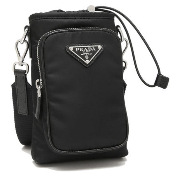 PRADA(プラダ)のショルダーバッグ「リナイロン スマートフォンケース トライアングルロゴ ブラックは、スマートフォンやミニ財布を収納できるユニセックスのミニバッグです。